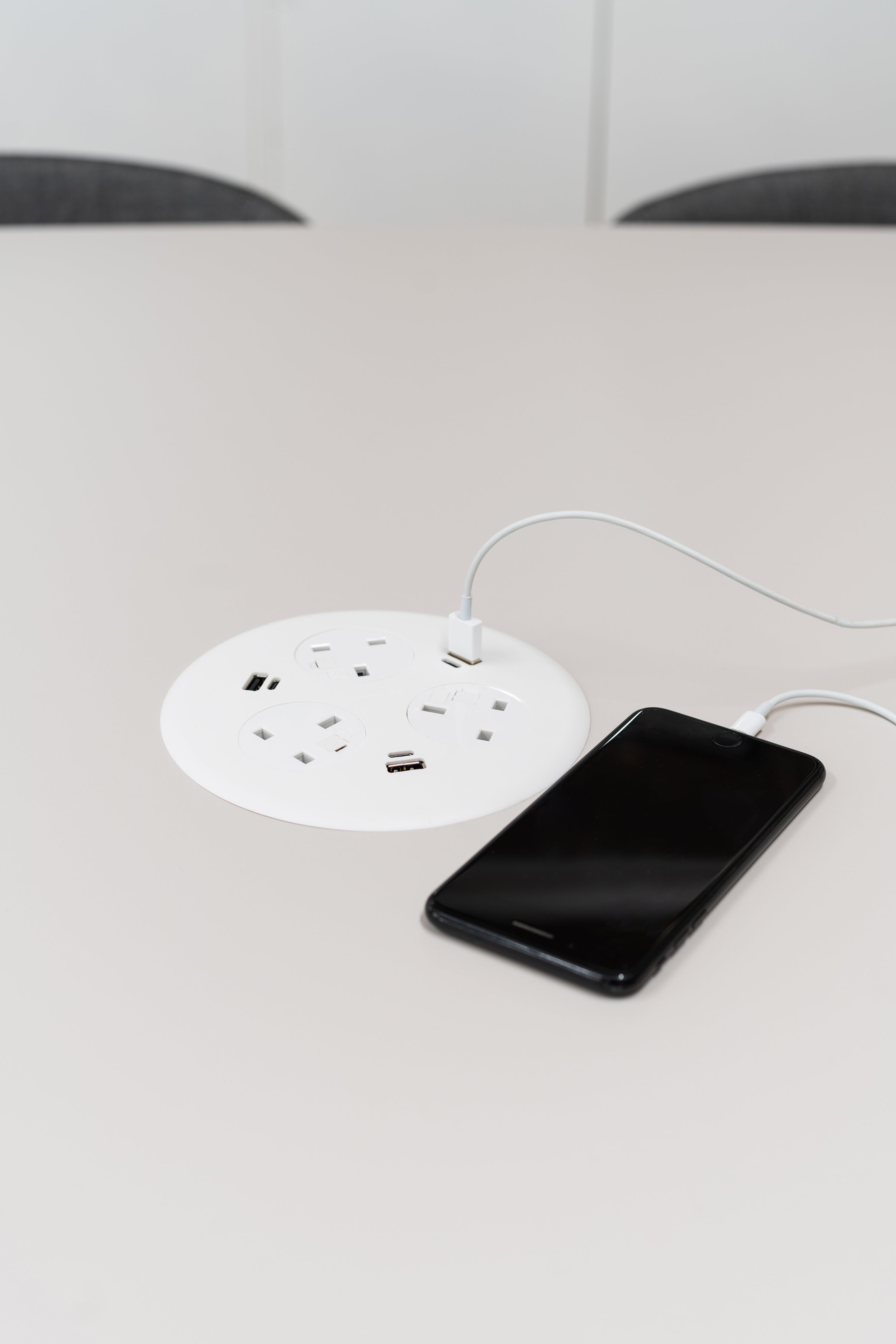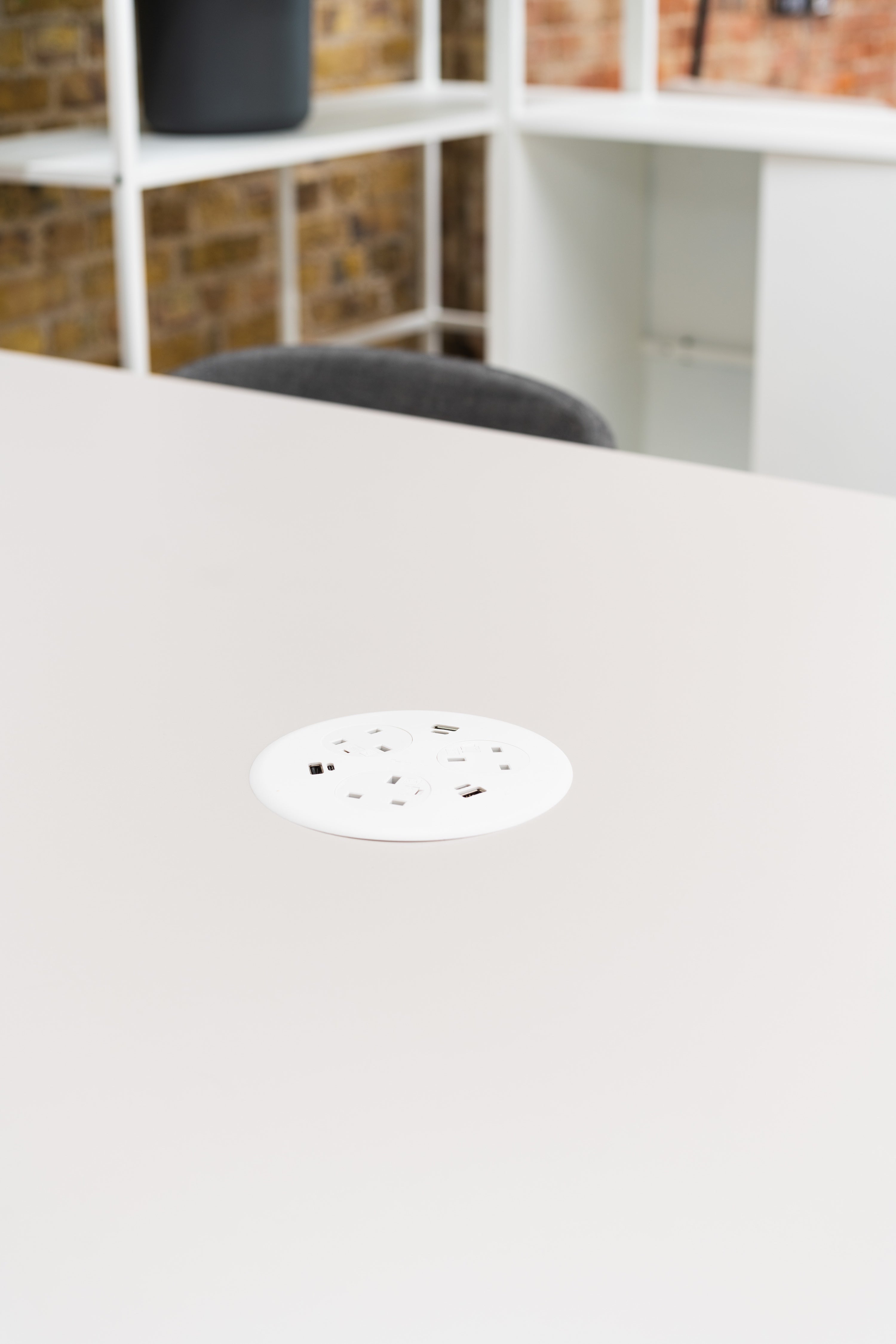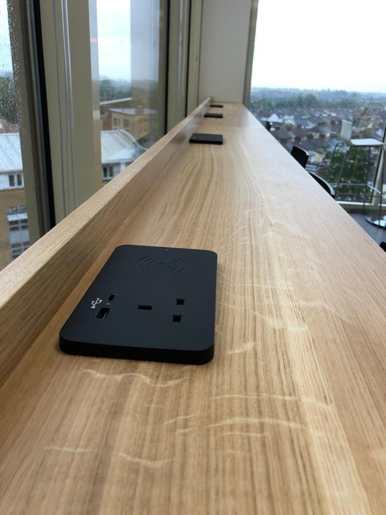 We sell a range of power and data modules that can be fitted to any of our meeting tables. When ordered at the same time as a table we include free fitting, the units can be retro fitted but require the table top to be cut to accomodate the modules.